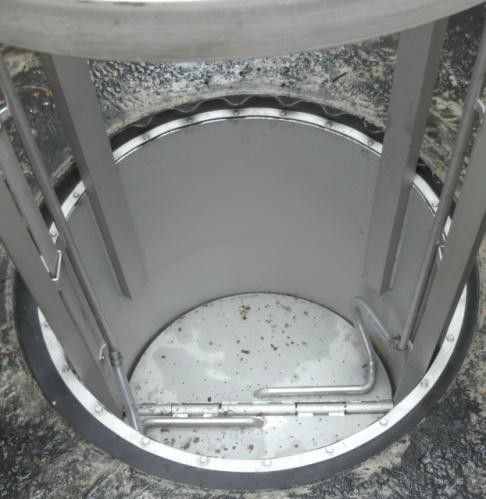 為了清空收集籃,要解開壓力軟管,用提升裝置將籃子完全從池子里拉出來,砂礫和碎片保留在籃子里,殘留水通過收集籃的底部排出。將籃子清空倒入垃圾箱或直接倒入垃圾車。拉動中間的解鎖桿就可以將柵格折疊而打開,砂礫會從底部落下。籃子清空以后,旋轉柵格,將籃子放回池子里。等重新接上對壓力耦合,砂礫收集器可以準備工作了。