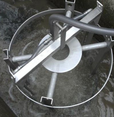 曝氣和雜質的再循環是由在遠處的操作室或室外控制柜的鼓風機產生。壓縮空氣由鼓風機通過一個壓力軟管或者不銹鋼管進入沉砂池。一個快速的對接耦合使得空氣壓力和砂礫收集籃連接。在耦合點堅硬的不銹鋼管將壓縮空氣傳送到籃子的底部,壓縮空氣吹到籃子底下通過一種特殊的曝氣系統形成一個空氣地毯。由于有再循環作用有機物質的沉積可以避免,因此,這些有機物質隨著水流流走。曝氣可以連續進行或者根據需要由定時器控制(時間繼電器,PLC等)。